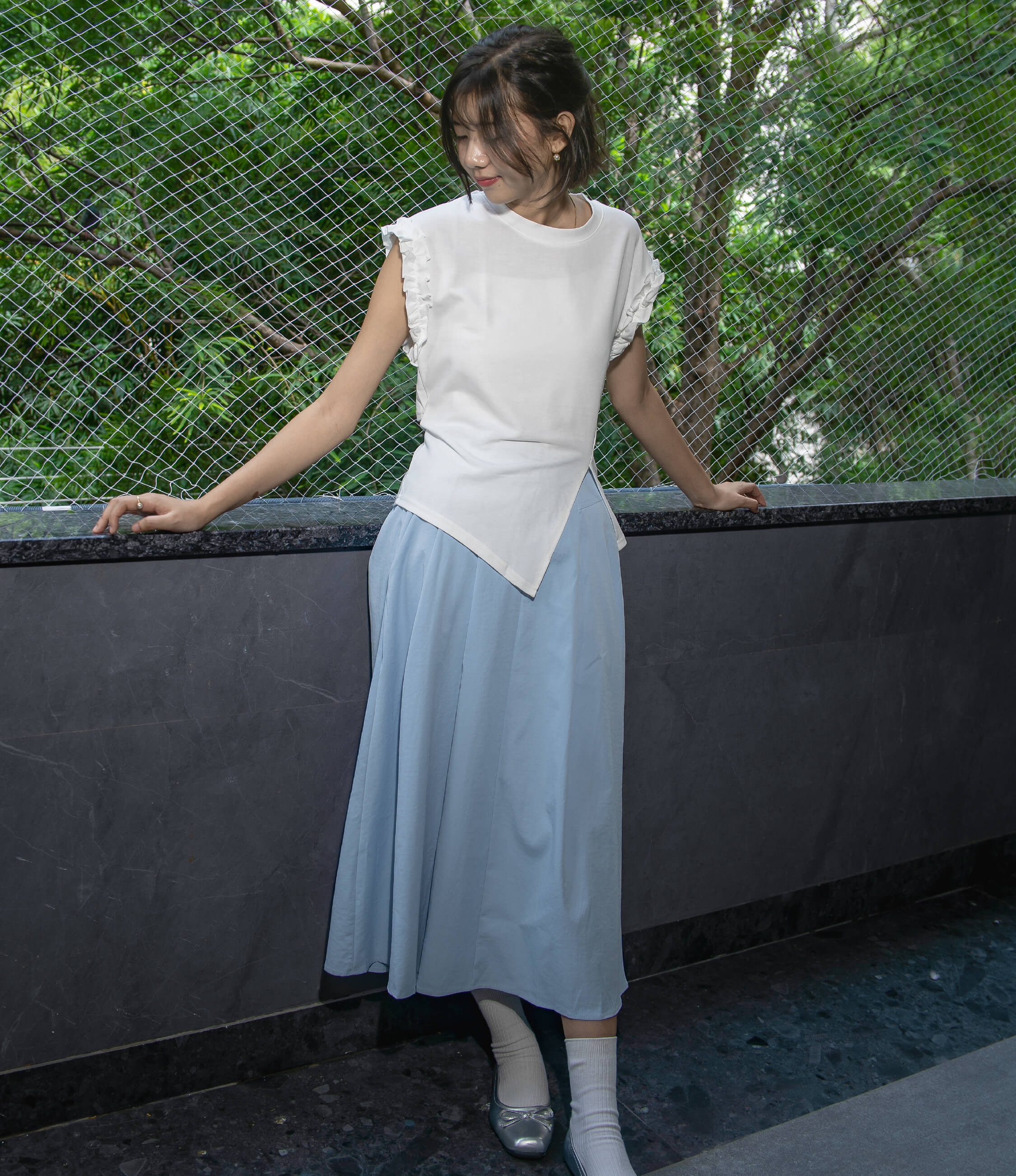 Soft Pleating: Subtle pleats at the waist contribute to the skirt’s gentle volume without overwhelming the shape.